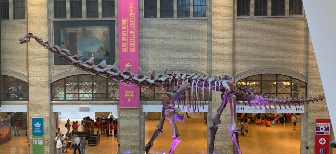 We took the subway to the Museum stop, and we headed above ground to visit the Royal Ontario Museum. Friendly museum staff directed us to the second level, which they claimed was the most popular with small children. We found that to be the case; the girls loved the dinosaurs, the children’s gallery with numerous hands-on activities, the bat cave, and the birds.