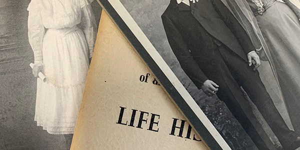 I can’t quite make out the middle and last names–they’re long, and I could make a good guess, but I’m not ready to name the person who created these materials yet. The next set of pictures, though, have legible names: Henry and Selma Kolb, next to a booklet titled “THE STORY of an EPOCH in the LIFE HISTORY of a SEGMENT of the KOLB FAMILY.”