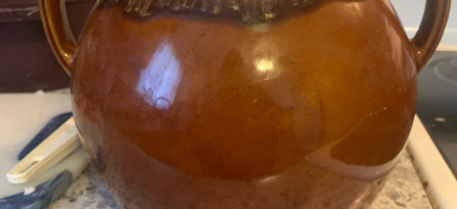 I don’t even know how old this pot is. It’s a roaster. Big enough for a 20 pound turkey. Big enough for a family feast of fried chicken at the Fourth of July. Big enough to feed crowd.